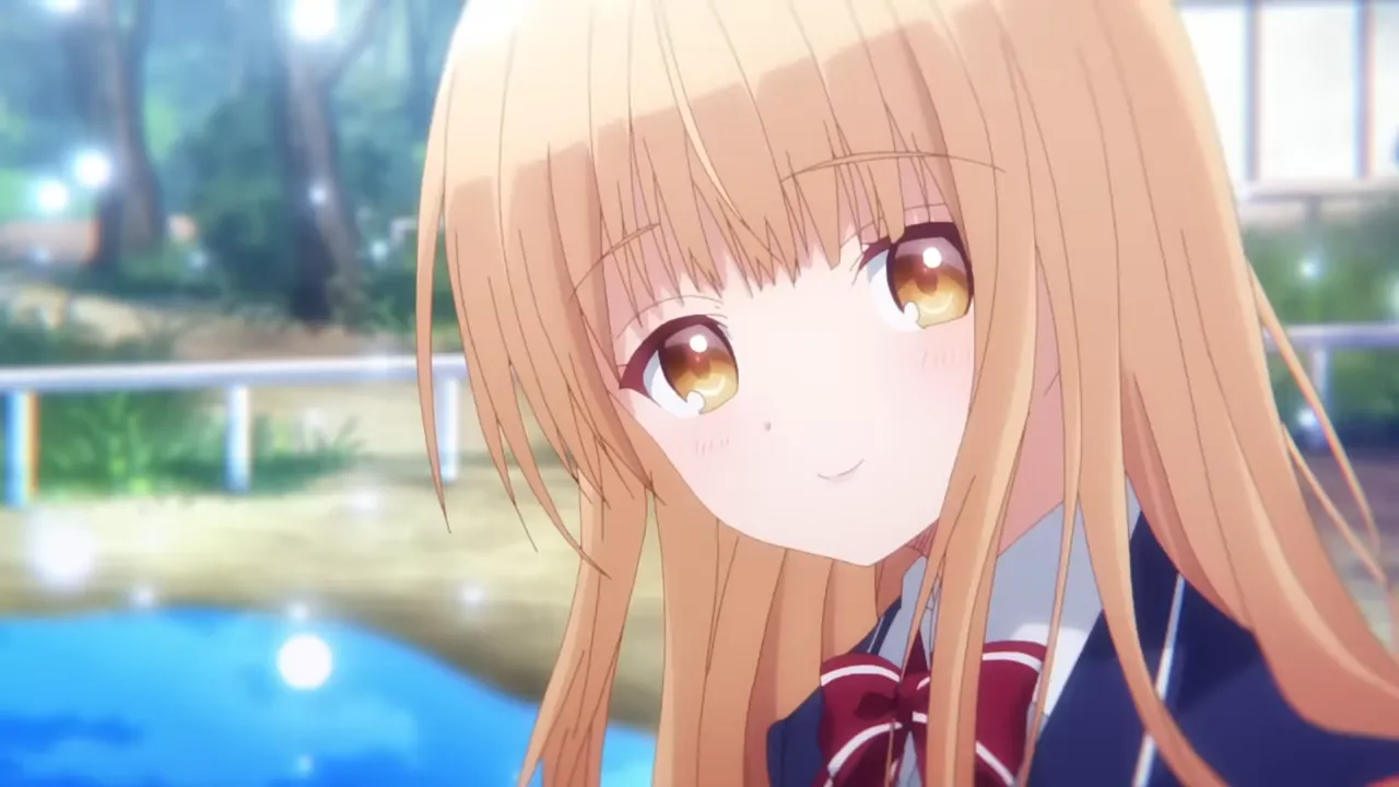 Every part of Mahiru's appearance is synonymous with beautiful, and she is often inseparably described as such. Her blond hair is always straight, well-groomed, flaxen, silky smooth, and lustrous. Her large eyes are caramel colored, with long lashes, both top, and bottom. In addition, Mahiru possesses pale, milky-white, soft, perfect skin and a shapely nose.